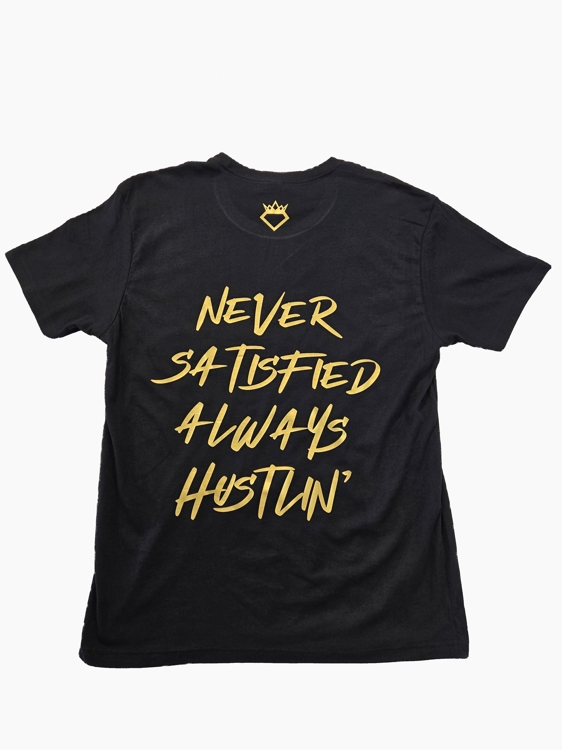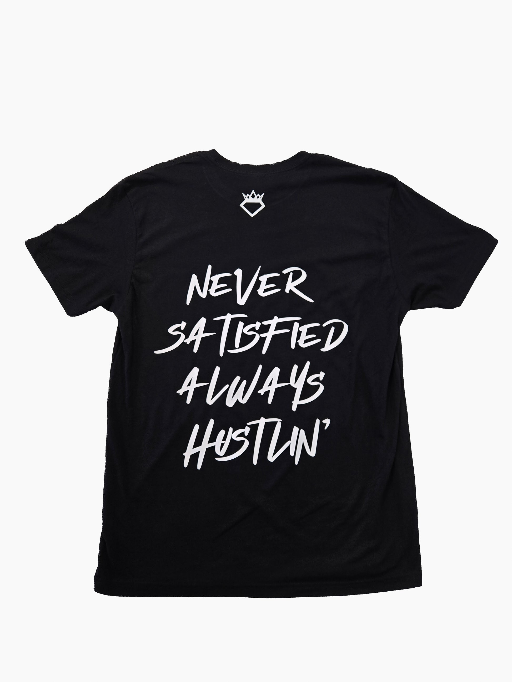 - "NEVER SATISFIED ALWAYS HUSTLIN" T-SHIRT MENS